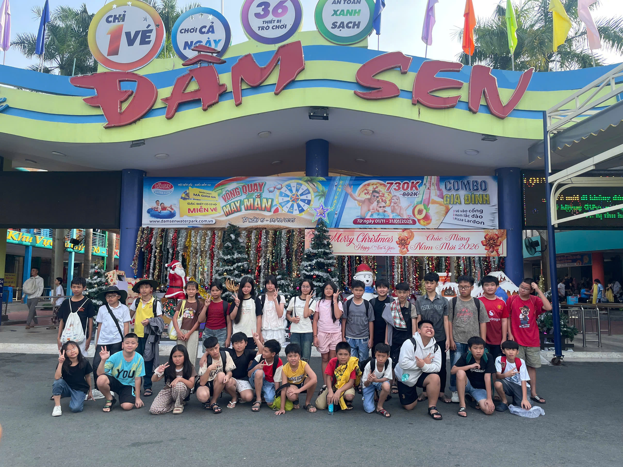 Sau hành trình học tập đầy ý nghĩa tại Bến Nhà Rồng, đoàn tiếp tục di chuyển đến Đầm Sen Nước để tham gia các hoạt động vui chơi, giải trí sôi động. Những khoảnh khắc vui đùa hồn nhiên, tiếng cười rộn rã đã giúp các em thư giãn, giải tỏa căng thẳng sau thời gian học tập.